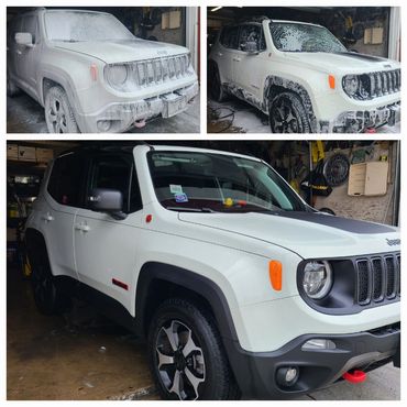 Outside of vehicle is washed, clay bared. A decontamination wash for the entire vehicle and a ceramic coating is applied for hydrophobic paint. The most up to date technology on your vehicle.