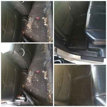 Interior of vehicle is cleaned of all unwanted items. For example, garbage, stains, smudges, etc. We go threw the whole vehicle with the vacuum cleaner. Carpet, and seats are cleansed, shampooed if needed. Leather seats will be cleaned and conditioned. All windows will be cleaned and wiped down as well. Dressing will be applied to dashboard, doors, panels, and all vinyl. To finish it off the car will be sprayed with new car fragrance that everyone loves.